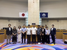 まずは、浦添市役所で担当課の職員の方々から、(仮称)浦添市多目的運動施設整備事業(新市民体育館整備)とウラオソイ スポーツ・観光交流拠点形成推進事業について、施設の概要や運営体制(PFIや指定管理者制度導入などの経緯)、現在の運営における効果と課題などについて説明を受けたり、質疑をしたりしました。
